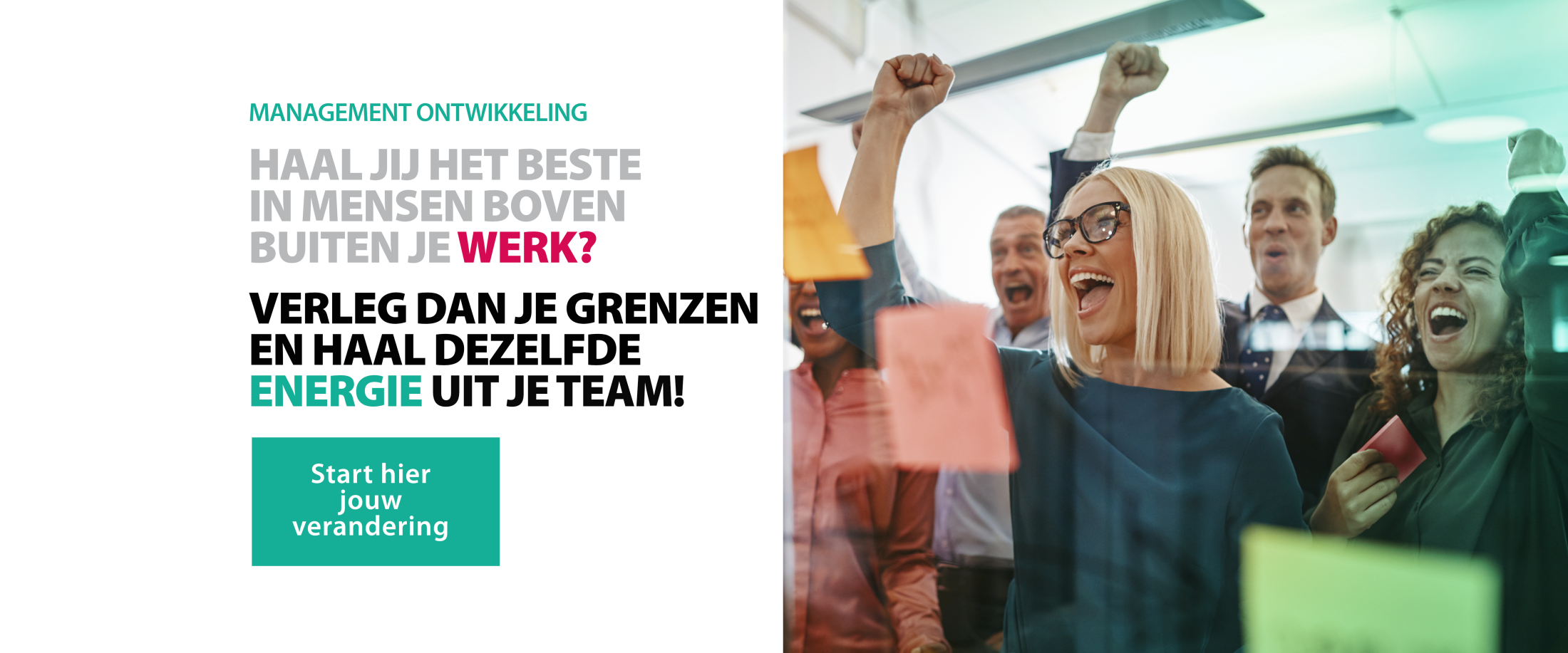 Onze management programma’s zijn krachtig, persoonlijk en effectief. Daarom nemen wij tijdens onze programma’s ook de uitdaging voor de toekomst van de afdeling of organisatie mee. Dit heeft zowel positieve effecten op de persoonlijke ontwikkeling van de deelnemers als op de verbinding met de organisatie.